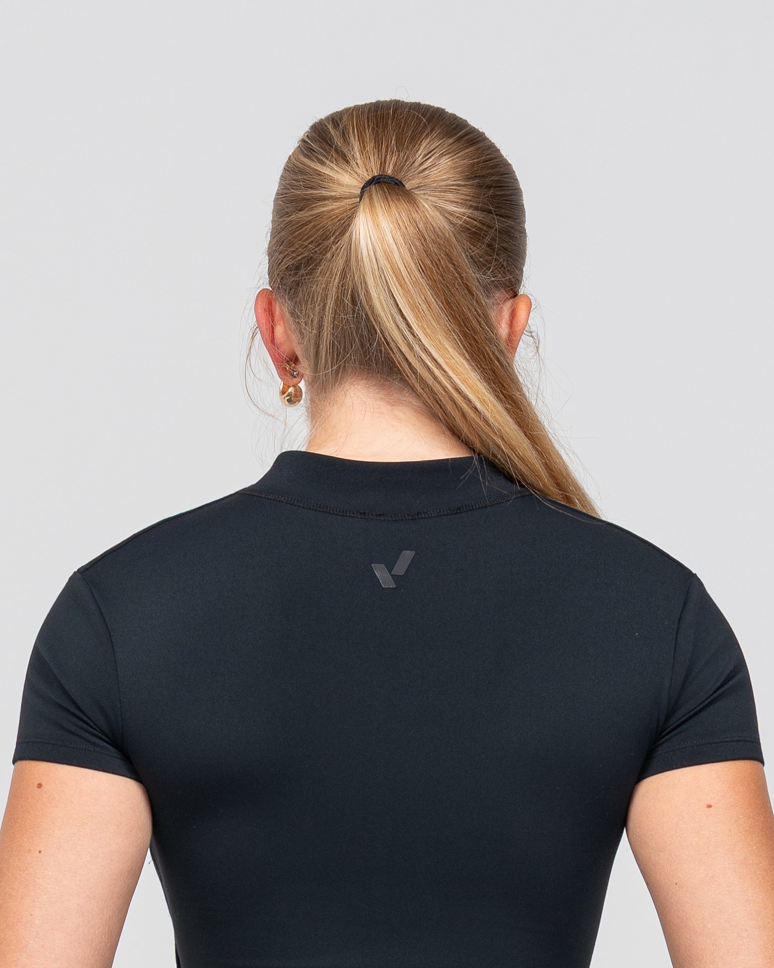- Functional front zipper for easy on/off and an elevated, sporty look.